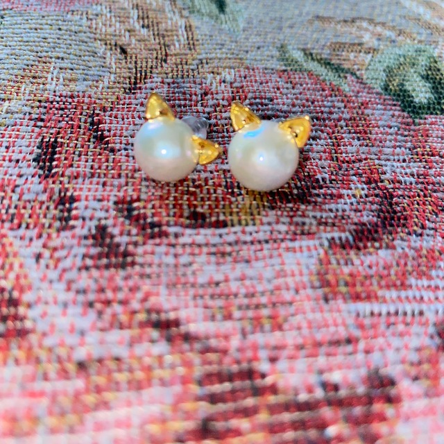 パールのネコピアス 真珠のピアス 猫 ねこ パール ピアス